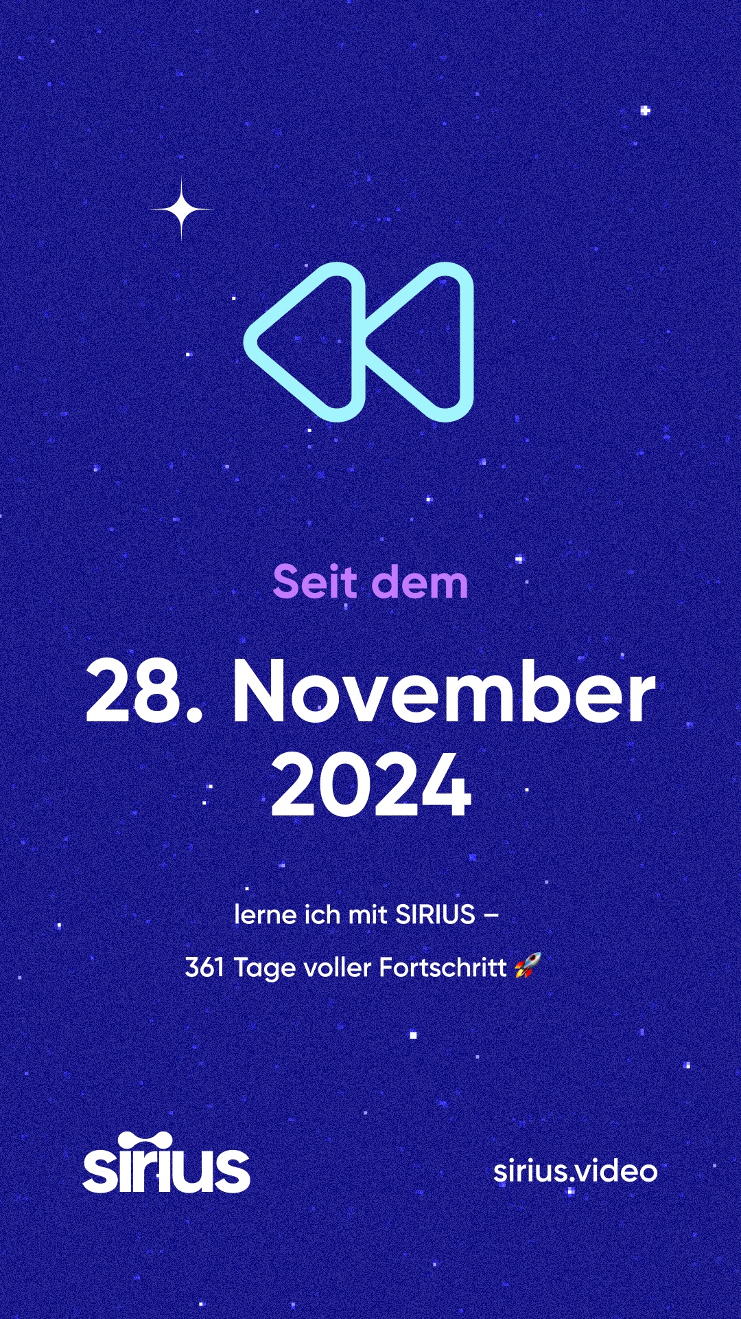 bist du bei SIRIUS. Das ist 361 Tage her — und schau, wie weit du seitdem gekommen bist! 🚀