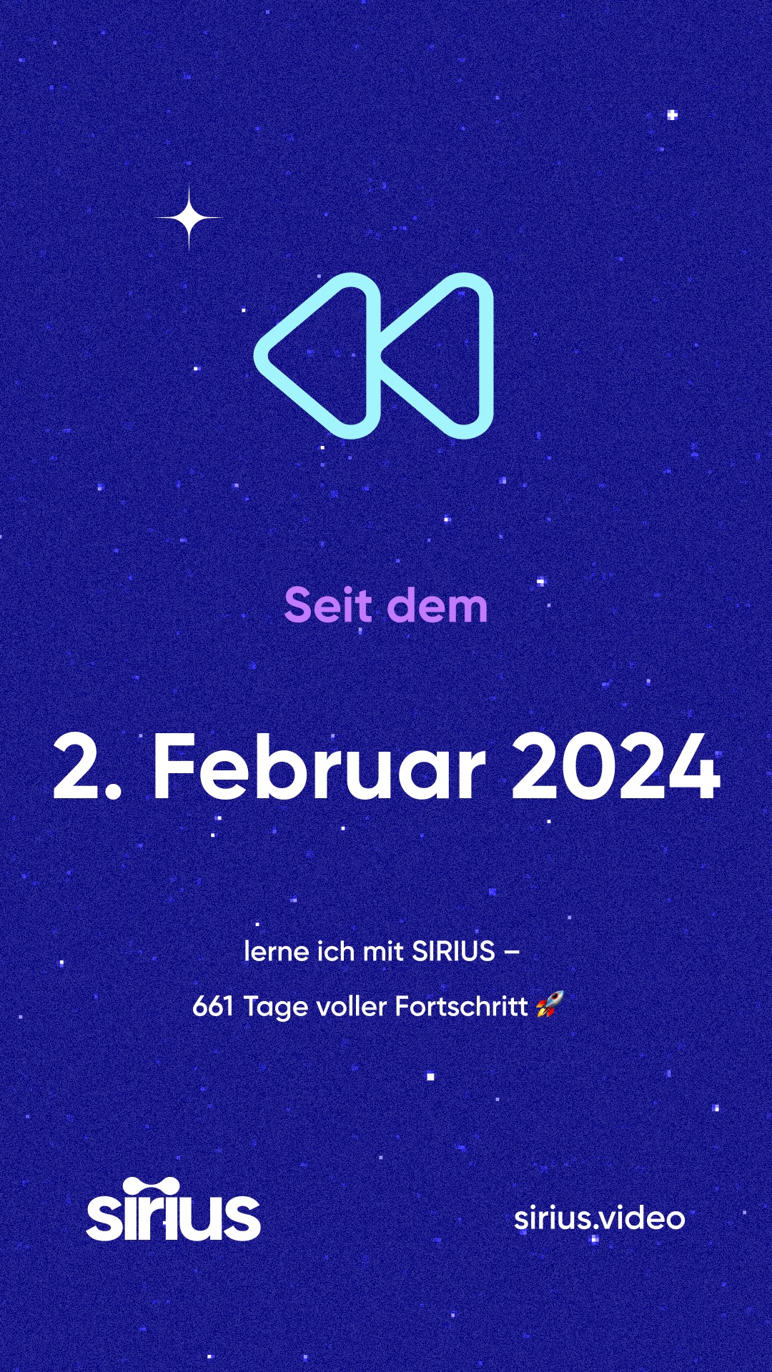 bist du bei SIRIUS. Das ist 661 Tage her — und schau, wie weit du seitdem gekommen bist! 🚀