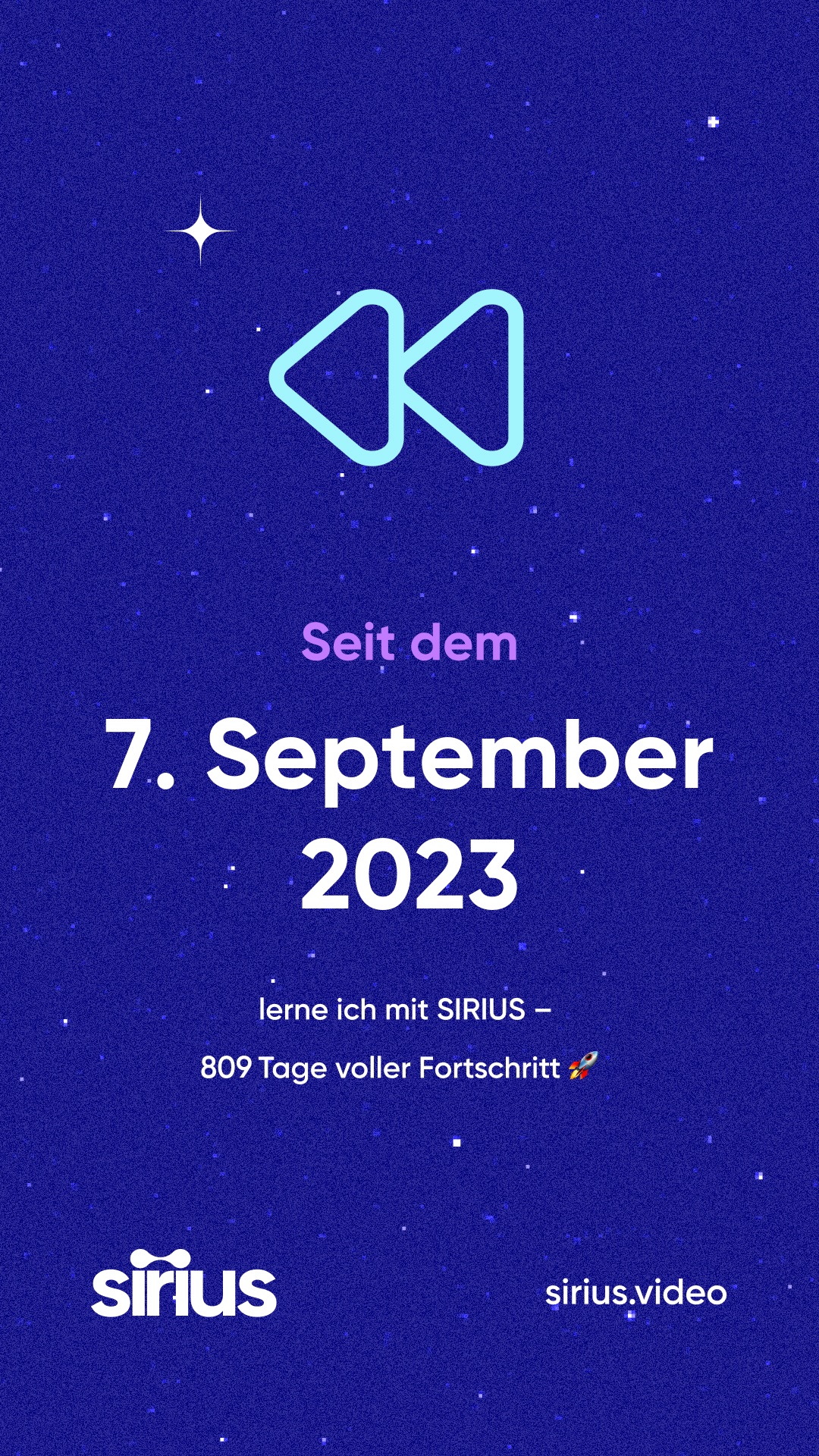 bist du bei SIRIUS. Das ist 809 Tage her — und schau, wie weit du seitdem gekommen bist! 🚀
