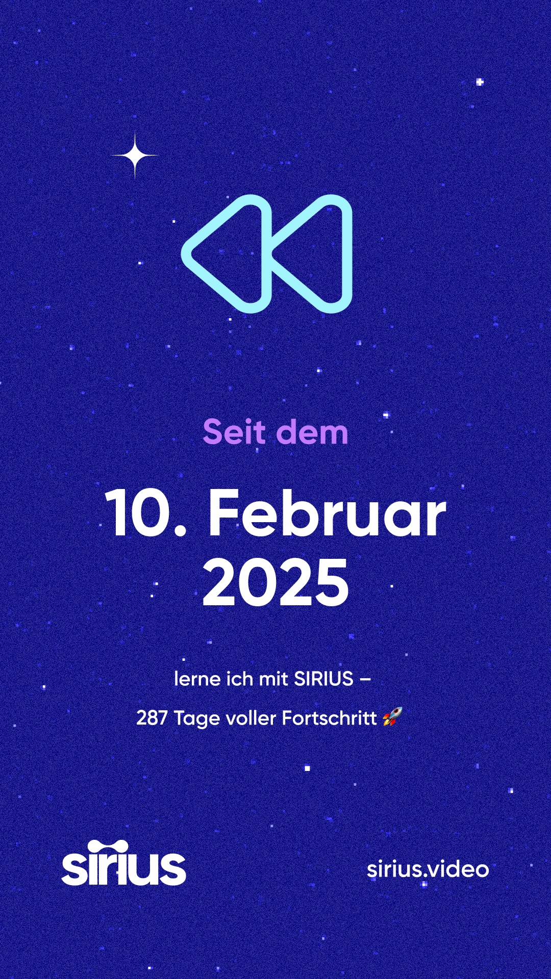 bist du bei SIRIUS. Das ist 287 Tage her — und schau, wie weit du seitdem gekommen bist! 🚀