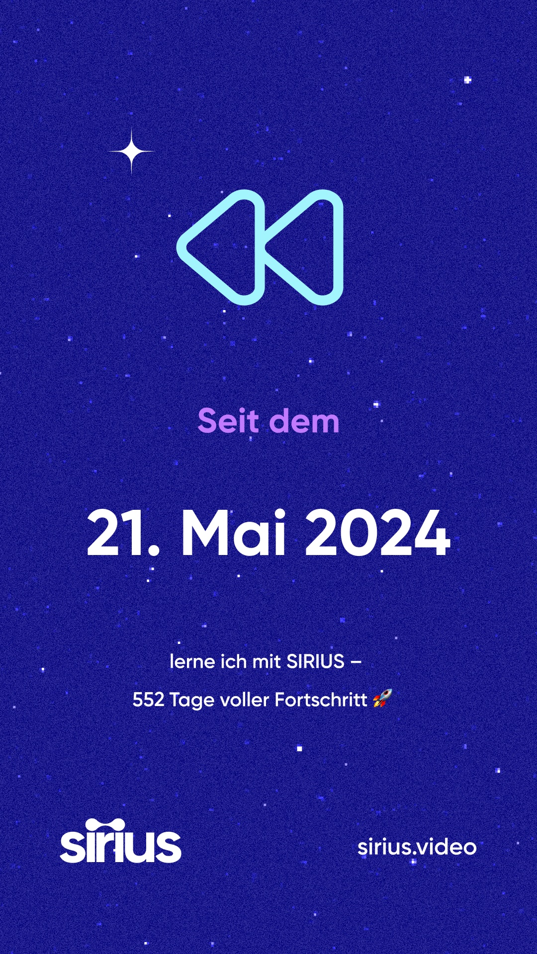 bist du bei SIRIUS. Das ist 552 Tage her — und schau, wie weit du seitdem gekommen bist! 🚀