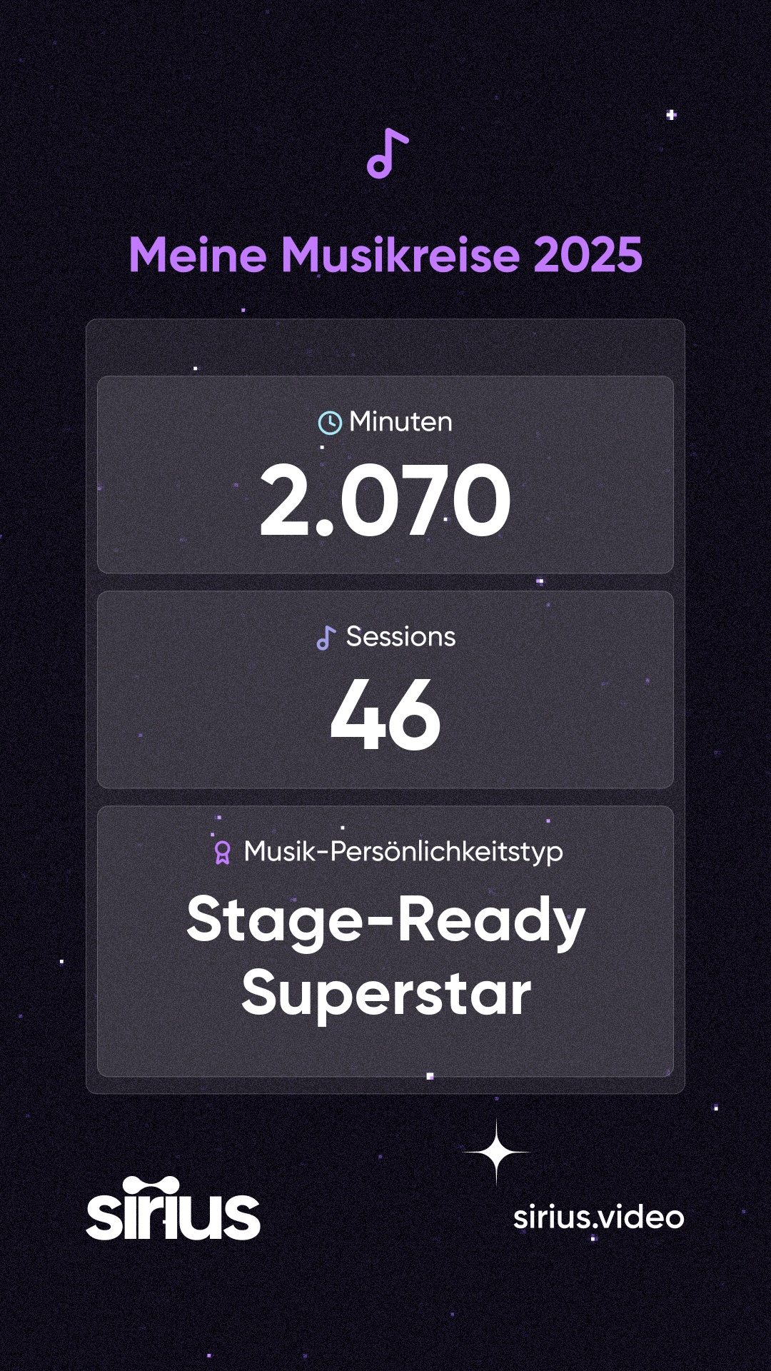 Poste dein SIRIUS Wrapped in deiner Insta-Story und markiere @sirius.video, um die Chance auf einen 300 € Thomann-Gutschein zu erhalten.