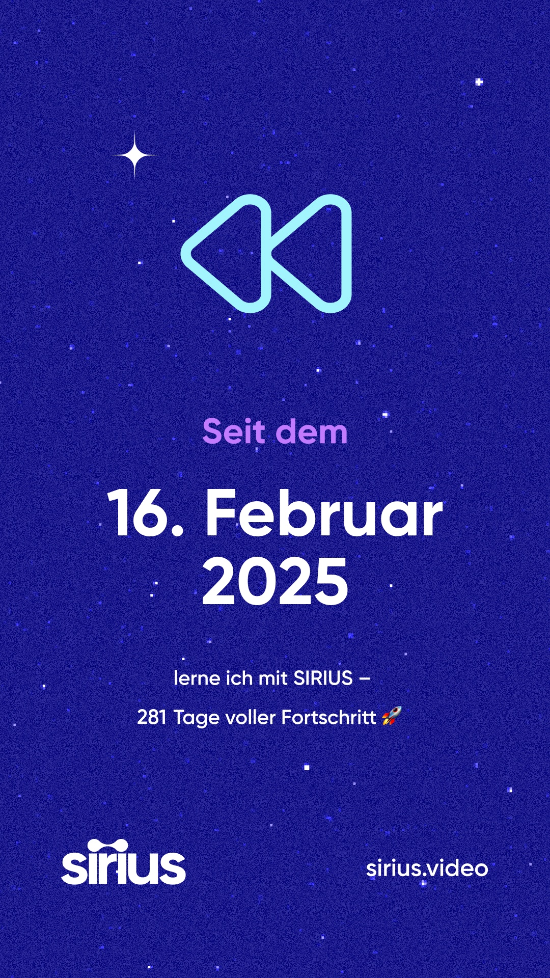 bist du bei SIRIUS. Das ist 281 Tage her — und schau, wie weit du seitdem gekommen bist! 🚀