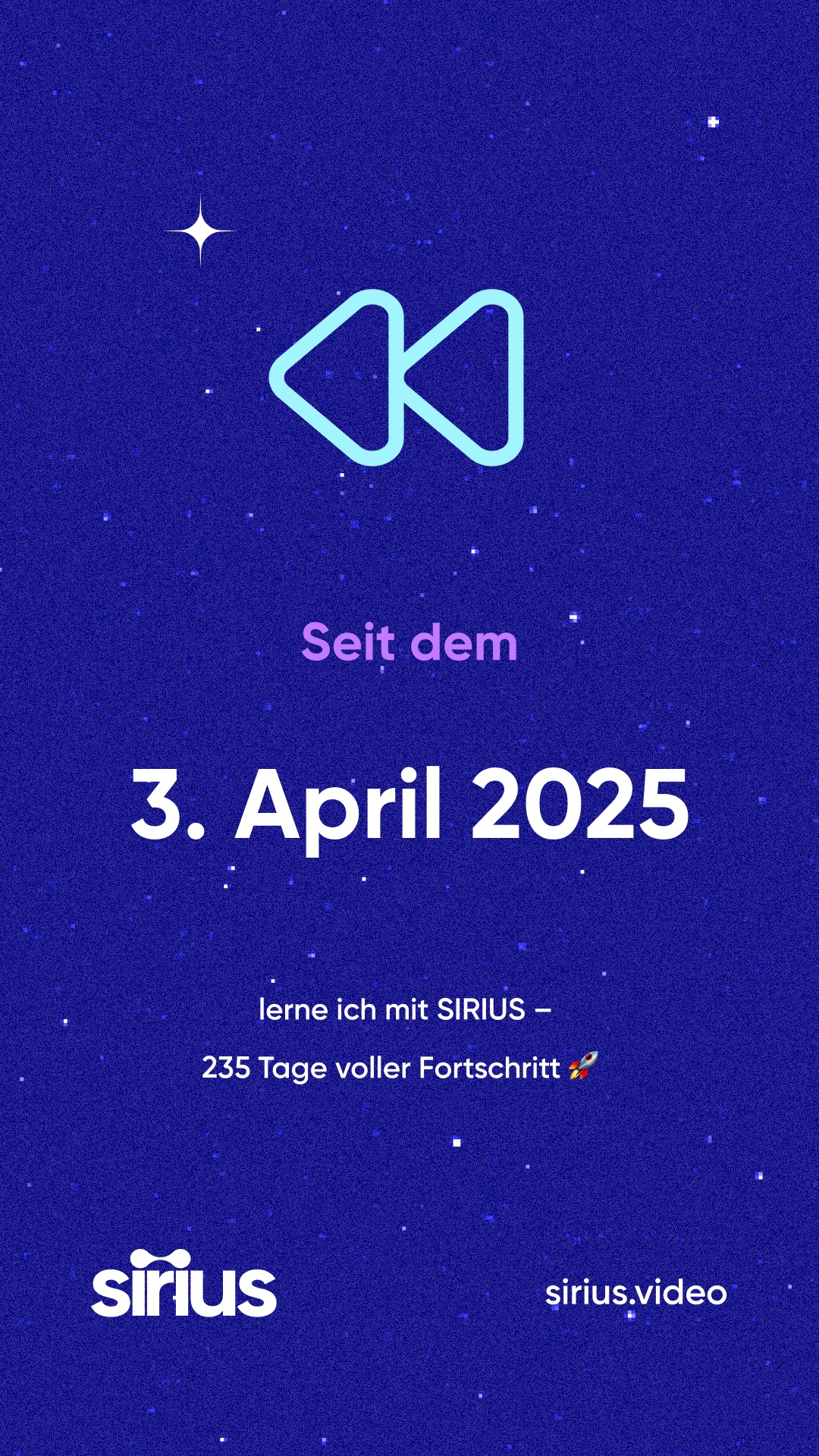bist du bei SIRIUS. Das ist 235 Tage her — und schau, wie weit du seitdem gekommen bist! 🚀