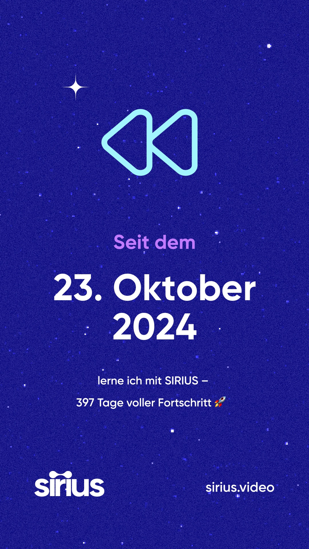 bist du bei SIRIUS. Das ist 397 Tage her — und schau, wie weit du seitdem gekommen bist! 🚀