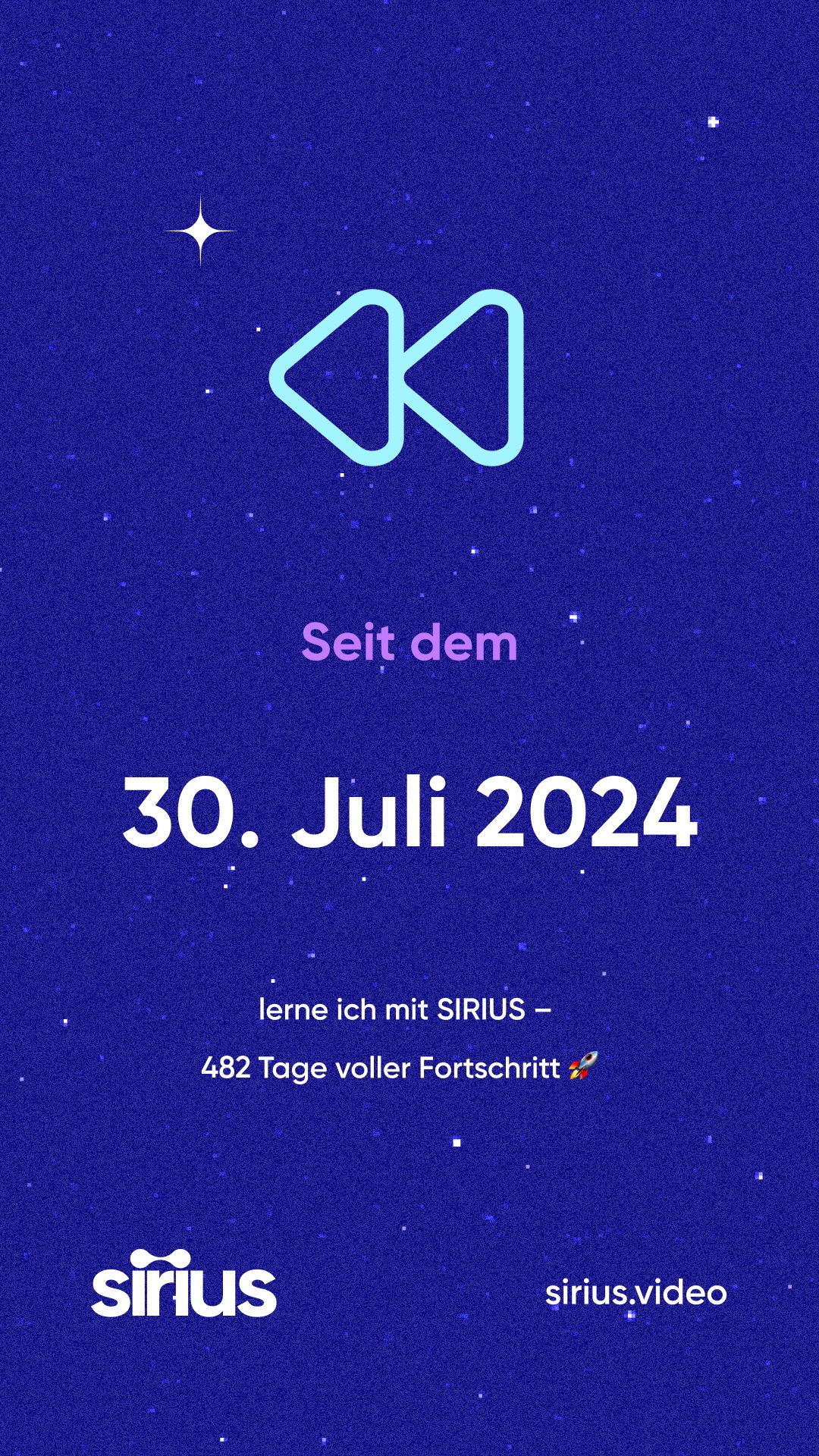 bist du bei SIRIUS. Das ist 482 Tage her — und schau, wie weit du seitdem gekommen bist! 🚀