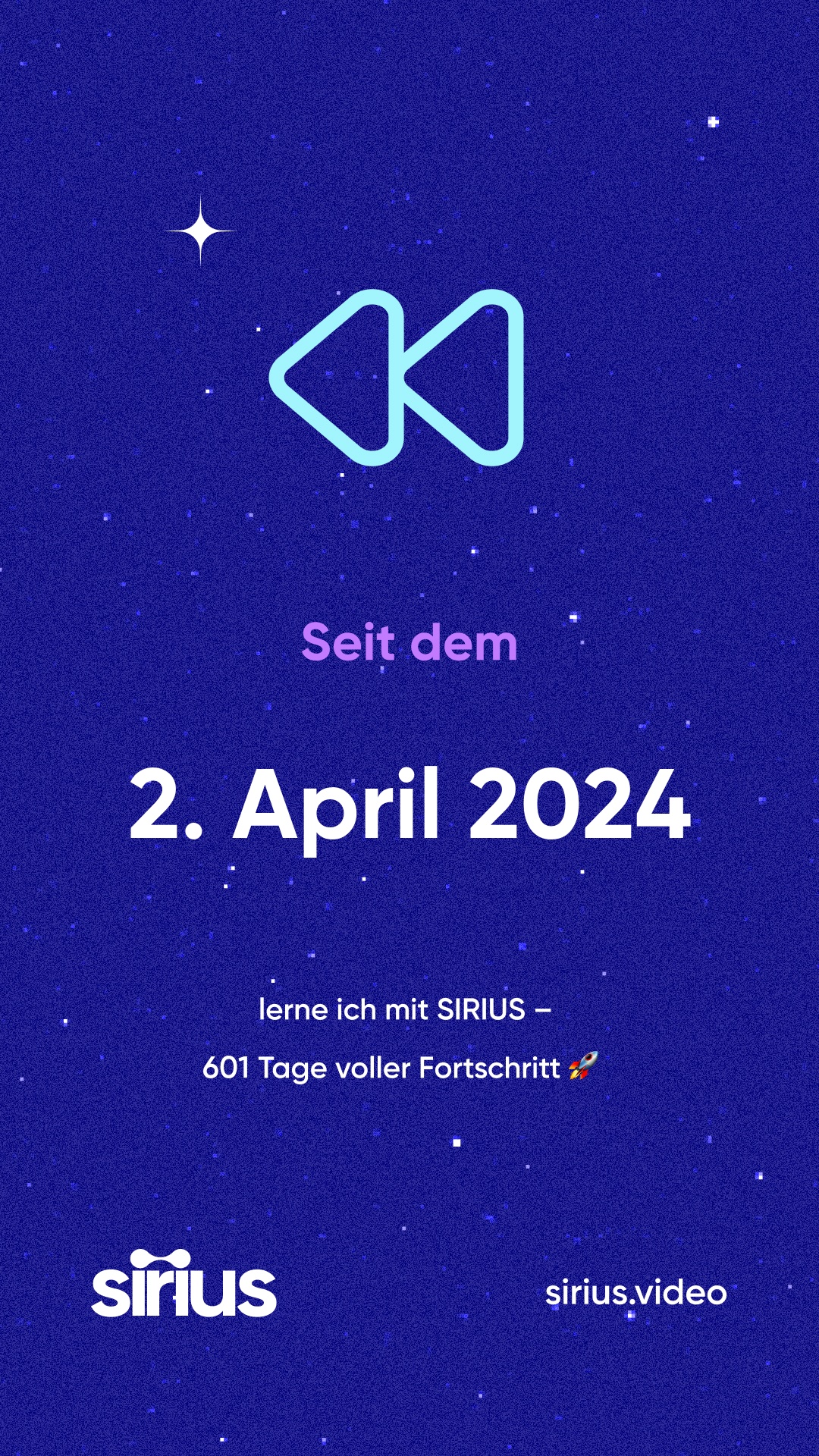 bist du bei SIRIUS. Das ist 601 Tage her — und schau, wie weit du seitdem gekommen bist! 🚀