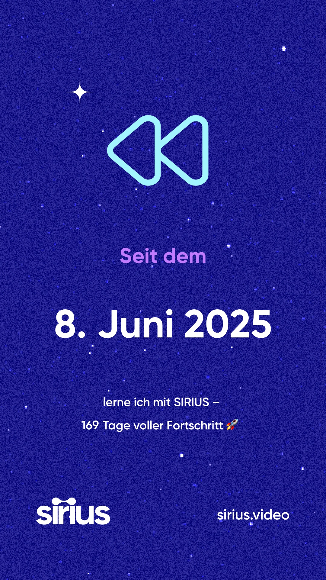 bist du bei SIRIUS. Das ist 169 Tage her — und schau, wie weit du seitdem gekommen bist! 🚀
