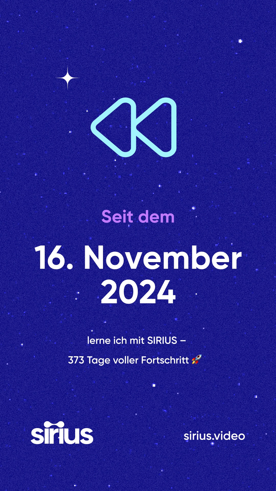 bist du bei SIRIUS. Das ist 373 Tage her — und schau, wie weit du seitdem gekommen bist! 🚀