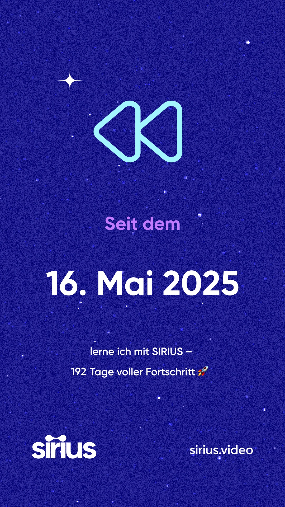 bist du bei SIRIUS. Das ist 192 Tage her — und schau, wie weit du seitdem gekommen bist! 🚀