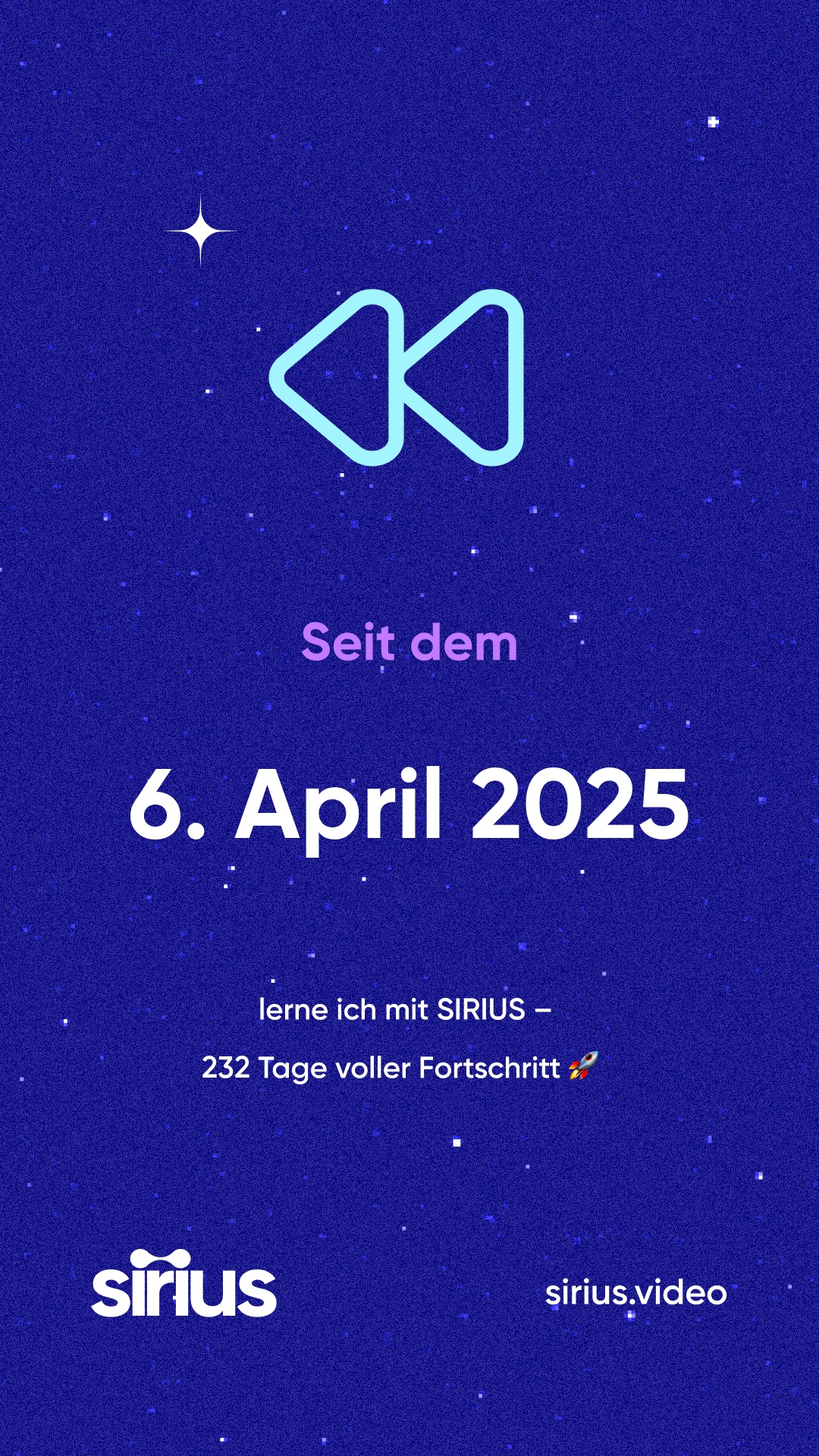 bist du bei SIRIUS. Das ist 232 Tage her — und schau, wie weit du seitdem gekommen bist! 🚀