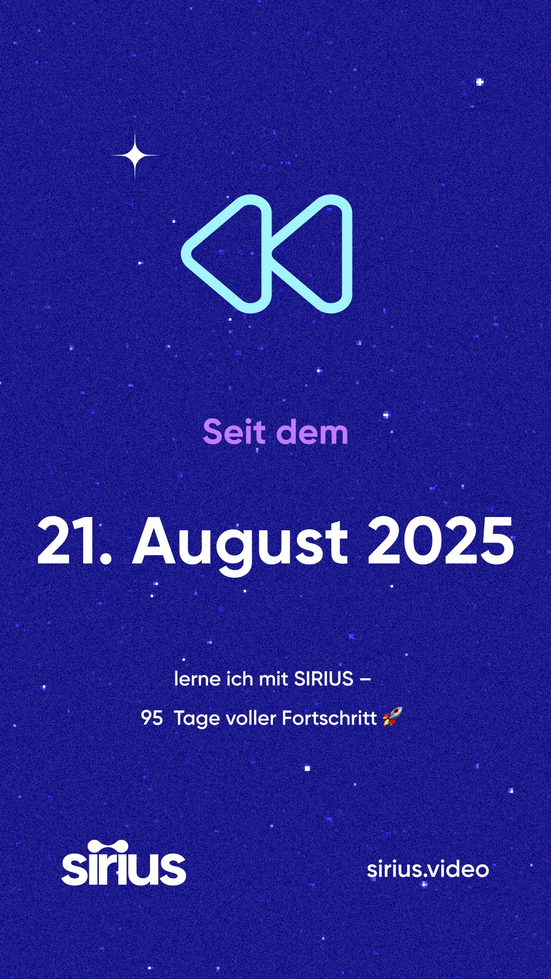 bist du bei SIRIUS. Das ist 95 Tage her — und schau, wie weit du seitdem gekommen bist! 🚀