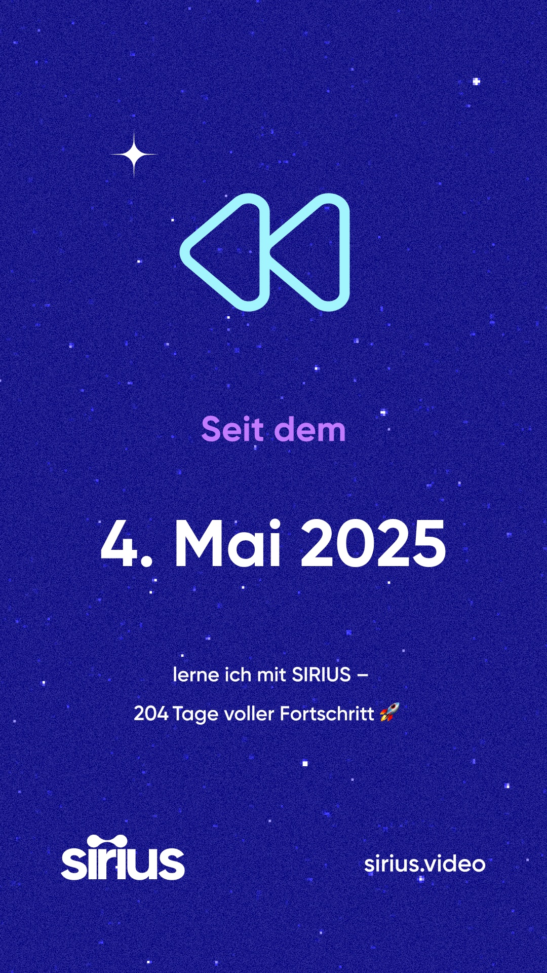 bist du bei SIRIUS. Das ist 204 Tage her — und schau, wie weit du seitdem gekommen bist! 🚀