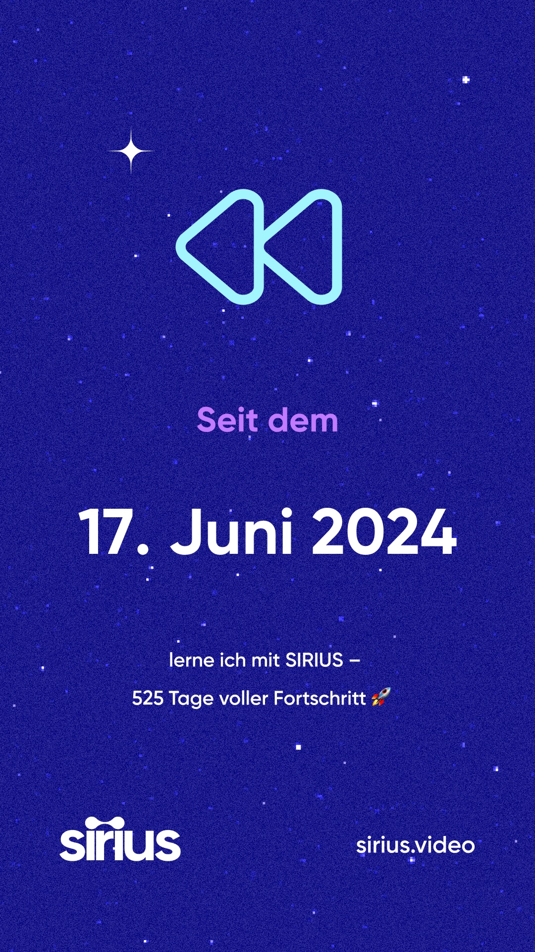 bist du bei SIRIUS. Das ist 525 Tage her — und schau, wie weit du seitdem gekommen bist! 🚀