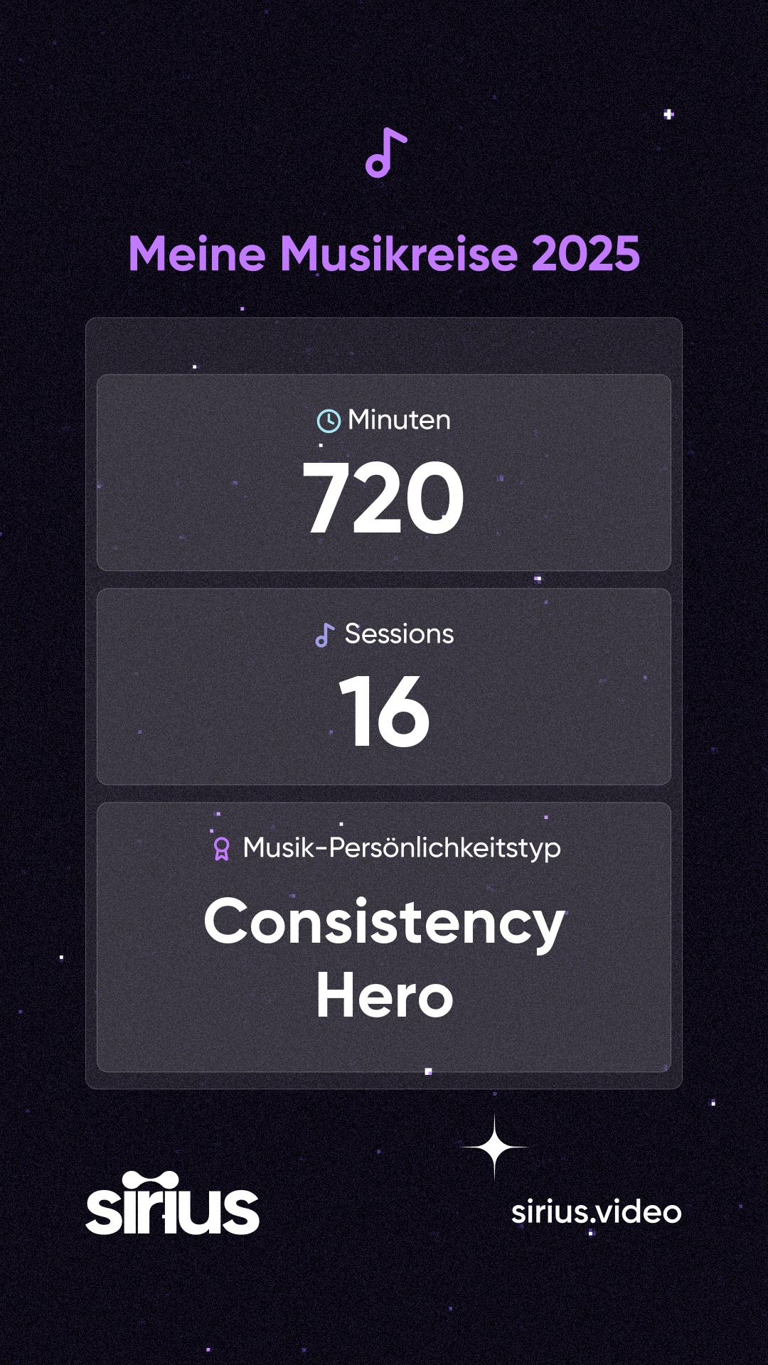 Poste dein SIRIUS Wrapped in deiner Insta-Story und markiere @sirius.video, um die Chance auf einen 300 € Thomann-Gutschein zu erhalten.