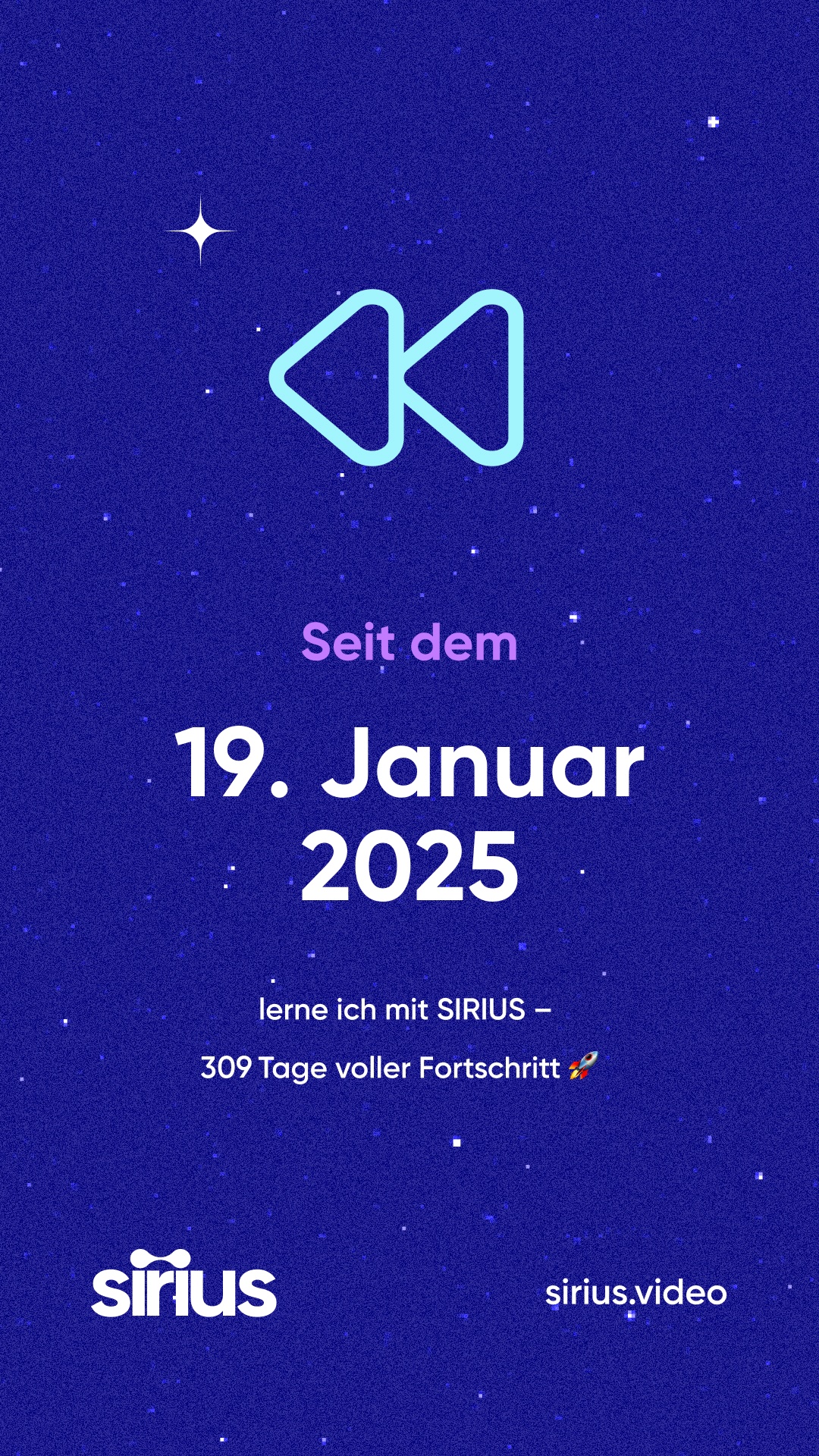 bist du bei SIRIUS. Das ist 309 Tage her — und schau, wie weit du seitdem gekommen bist! 🚀